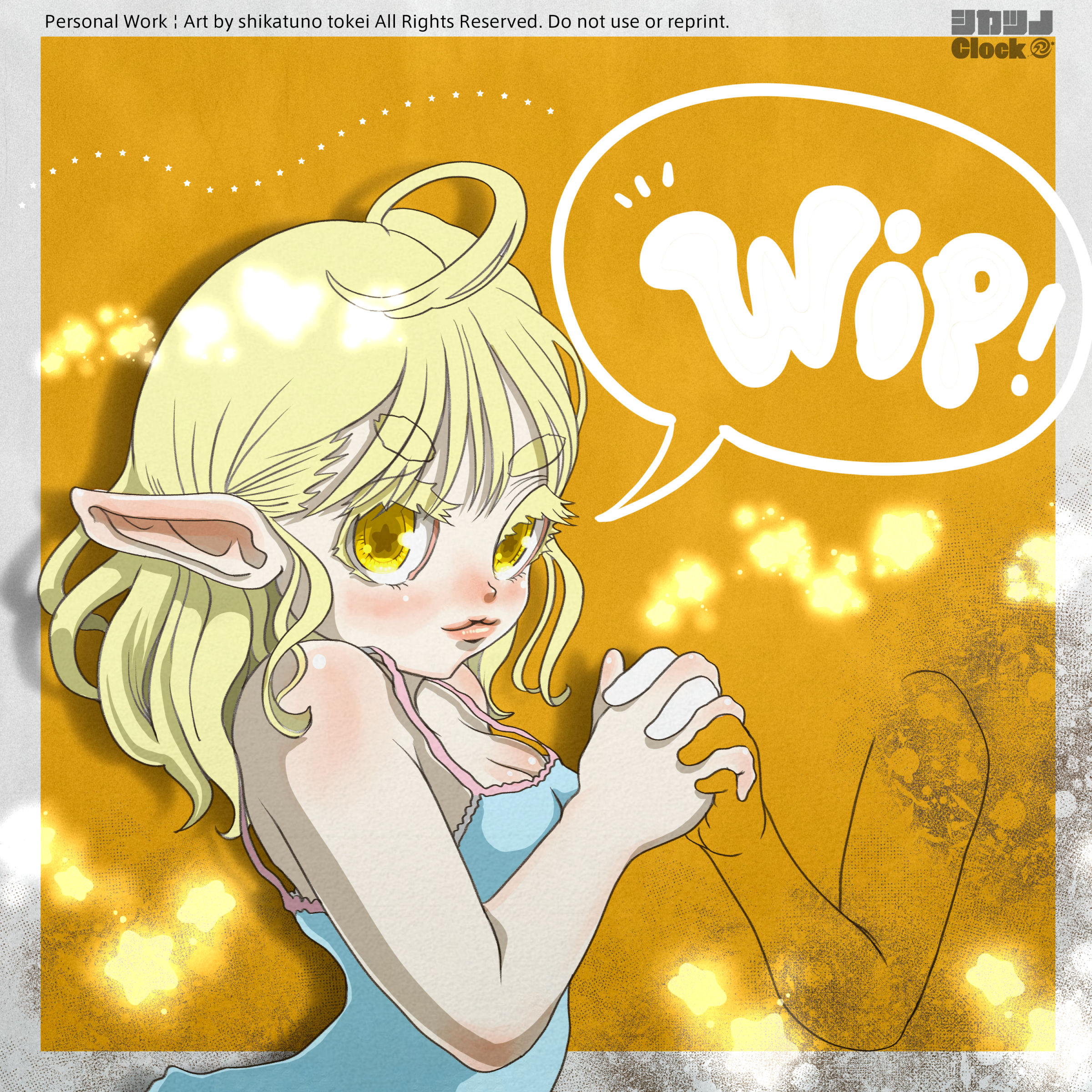 2026年2月25日 Wipです。 (No.680) « 前の記事 次の記事 » Category: イラスト / イラストレーター / 活動報告 / 生存戦略進捗 この記事は約 1 分で読めます こんにちわ!イラストレーターの鹿角時計です。本日のらくがき投稿の時間です。 🔗 Link & Portfolio ポートフォリオサイトと各種リンク集です。 lit.link POTOFU 🎨 Request 「つなぐ」にてご依頼受付中です🌟 ↑ メッセージよりご相談ください SNSのDMやメールでも随時受付ております。 📢 Follow Me この記事をシェアする X Facebook LINE URLコピー 関連記事 No.329 加筆修正note見出し画像 No.674 方眼紙に描いた落書きをデジタルで描き直しました。 No.522 ちびキャラ! « PREV今日の落書き 無駄にキラキラさせるのが癖になってる。 NEXT »昨日のwipが完成しました。 オリキャラの 腹ぺこエルフのペコルと ぐーたらエルフのポリーナです。