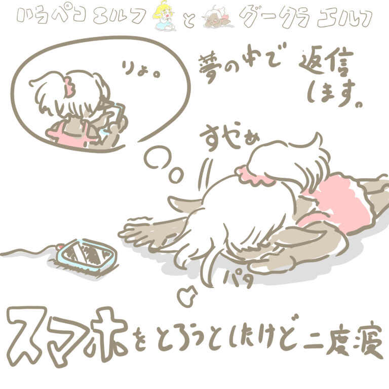 episode 07 返信してないのを思い出したけど、まぁいいかと思って寝落ちするのはよくあります。 黒いエルフさんの場合は24時間常に寝落ち対応です。(返信しない) #OC #絵柄が好みって人にフォローされたい #il […]