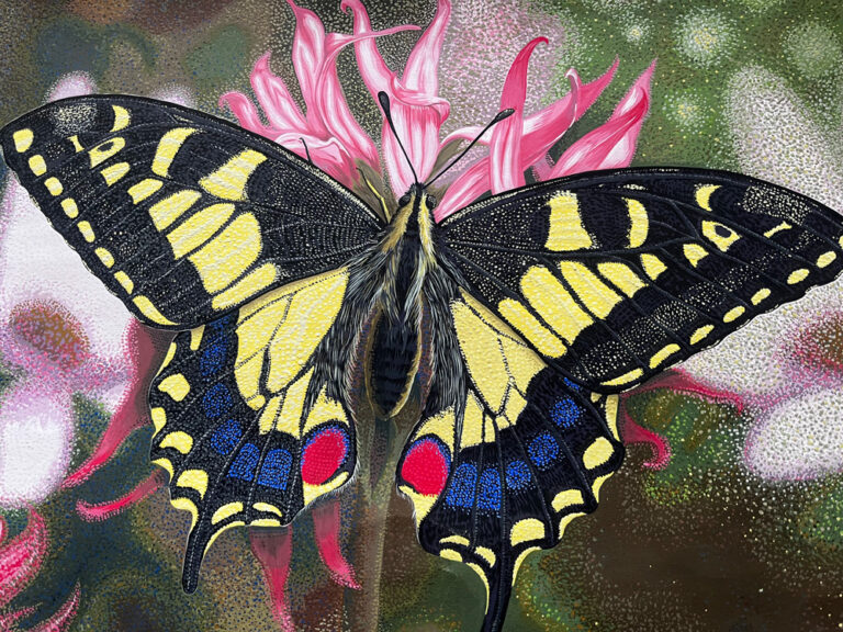 アゲハチョウを描きました。もっと大きいキャンバスとかに描きたいですね。 もっとリアルにできそう。背景はちょっと粗めだけど、蝶を細かく描いたので引き立ってよりよかったかもしれません。